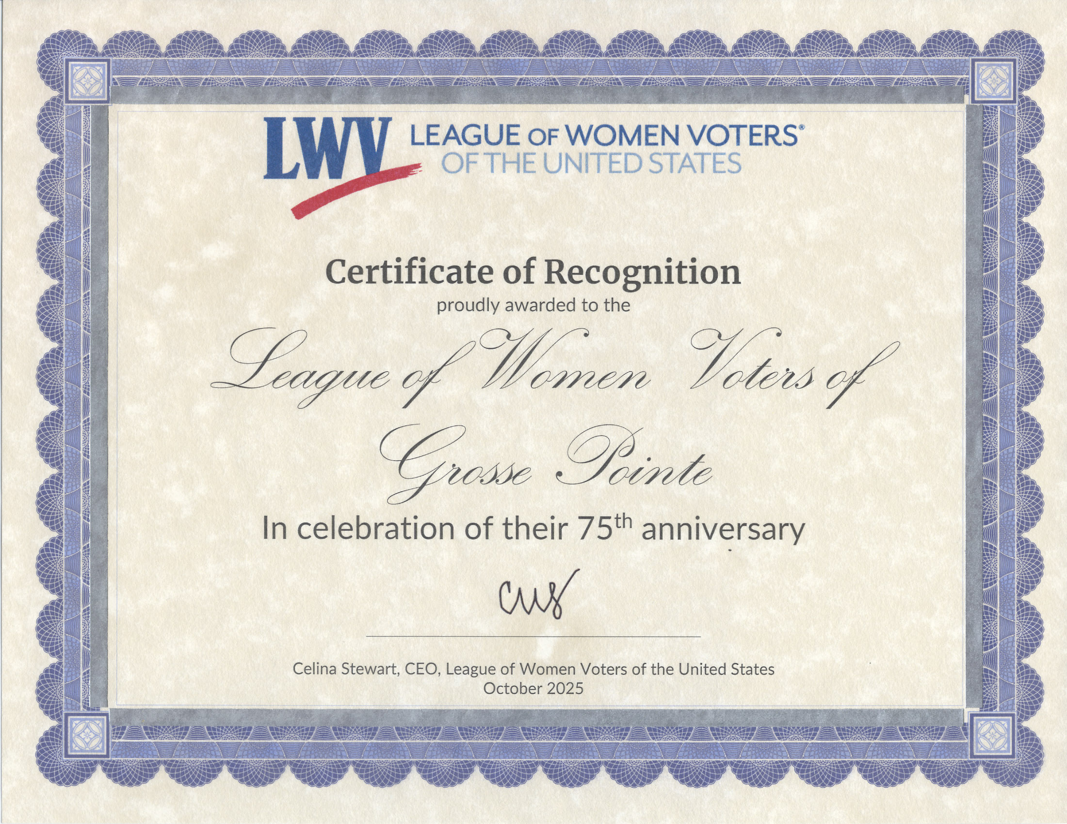 Certificate of Recognition-LWVUS